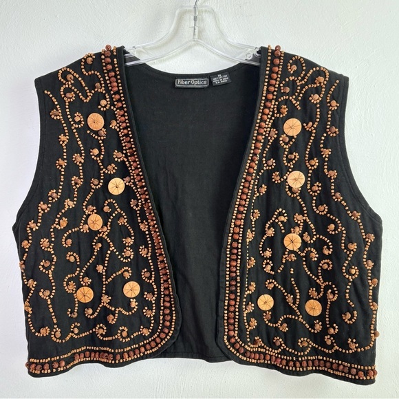 Vintage Made in India Cotton Wooden Beaded Cropped Open Vest Bohemian Boho M