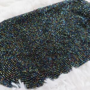 Vintage Made in Japan black beaded kiss lock purse. Black with blue shift beaded kiss lock purse.