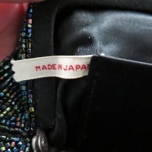 Vintage Made in Japan Black Beaded Kiss Lock Purse Evening Clutch