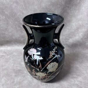 Vintage Made in Japan Black Mini Vase with Hand Painted Flowers *STUNNING* in excellent condition