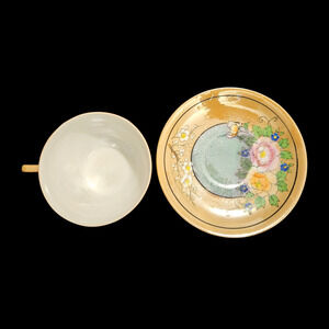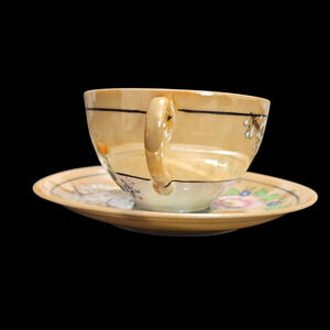 Vintage Made in Japan Peach Lustre Floral Teacup & Saucer Set of 3