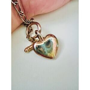Vintage bracelet with chunky silver-tone chain and gold-tone puffy heart charm. Toggle clasp closure. Stamped “MADE IN KOREA.” Approx. length 8”. Classic 90s/Y2K fashion jewelry.
