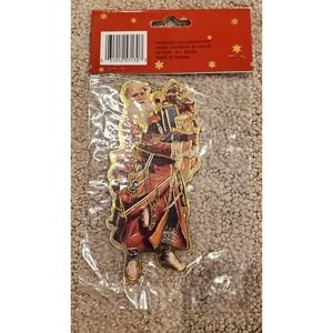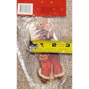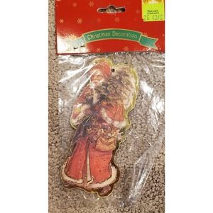 Vintage Made in Taiwan Christmas Santa Ornaments Sealed in Packages in very good pre-owned condition. Ornaments are made of cardboard/paperboard and very detailed with Gold outlines and edging. These were made exclusively for Frank's Nursery & Crafts. See photos for details. POOS