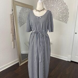 Vintage Made in USA Blue White Gingham Milkmaid Cottage Core Apron Midi Dress L