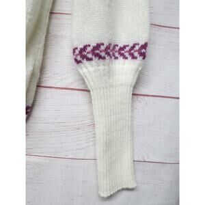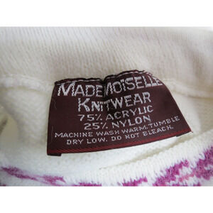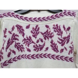 Vintage Mademoiselle Size Small (?) Cream Sweater w/ Purple Leaf Pattern
