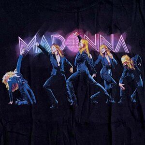 A special find! This fine cotton knit top - only available to 2006 "Confessions Tour" concert goers until now. The front & back photo prints show Madonna in vibrant stage settings. This long sleeve fashion top is size Medium measuring 22" Tall x 14" Wide, The garment is in perfect condition