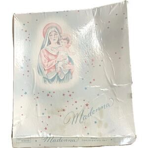 Vintage Madonna Baby Boy Christening set. Onsie, vest, cap, tights, smock in box