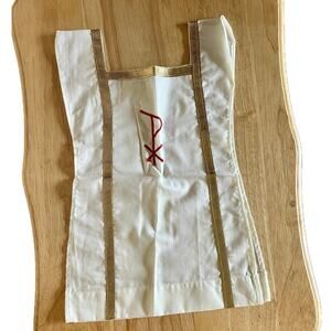 Also included is a smock or vestment with gold ribbon trim and the Chi-Rho monogram.