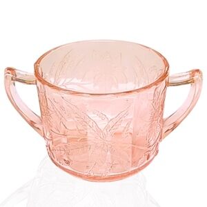 • (1) Pink “Poinsettia” open sugar bowl by Jeannette Glass Co. (1931 – 1935)