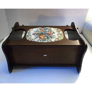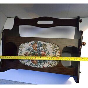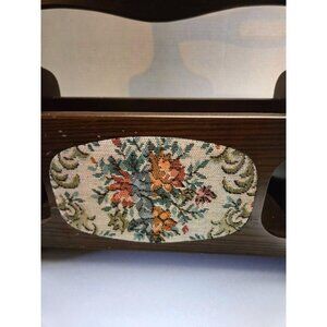 Vintage Magazine Rack Holder Hand Carved Solid Mahogany Wood with Needlepoint Si