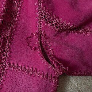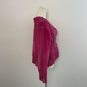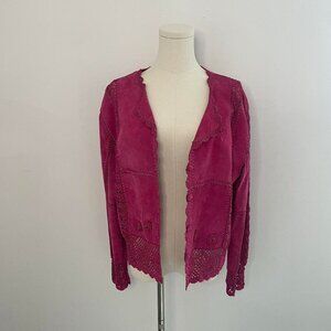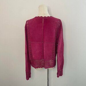 Vintage Magenta Suede Crochet LAce Jacket- Boho Y2K Romantic Style, Size Large