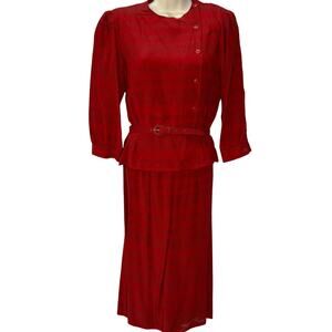 Vintage Maggie London Jeannene Booher Red Silk 2 Piece Set Size 10 Skirt Belt