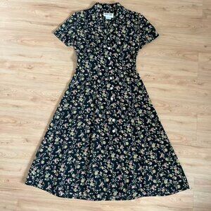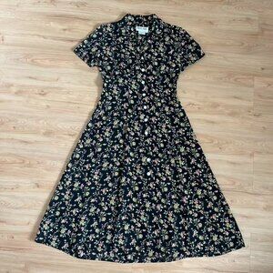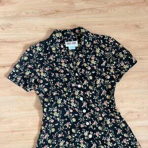 Vintage Maggy London Short Sleeve Floral Long Button Up Front Dress Petites Size 2