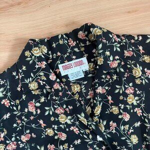 Vintage Maggie London Short Sleeve Floral Long Button Up Front Dress Petites 2