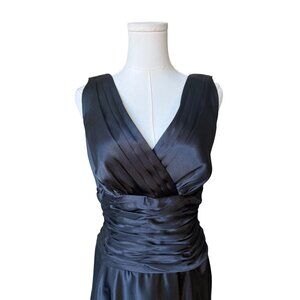 Vintage Maggy Boutique Satin Cocktail Dress Size 6 V Neck Ruched Slimming Black
