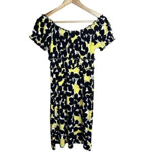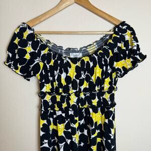 Vintage Maggy L Y2K Off Shoulder Floral MIDI Dress Women’s Babydoll Smocking
