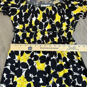 Vintage Maggy L Y2K Off Shoulder Floral MIDI Dress Ruffle Smocking Pinup Spandex