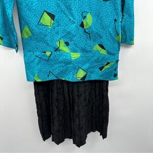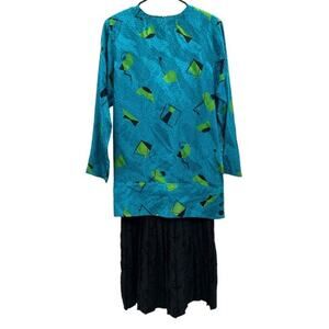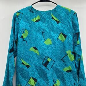 Vintage Maggy London 100% Silk Blue & Green Geometric Tunic Slip Dress