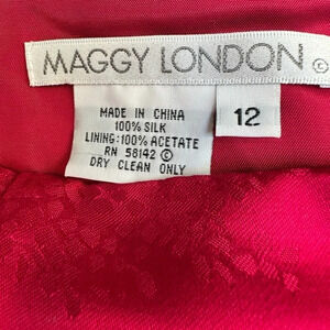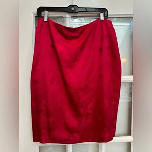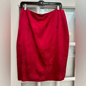 Maggy London Vintage 100% Silk Cranberry Holiday Red Floral Pencil Skirt Size 12