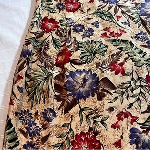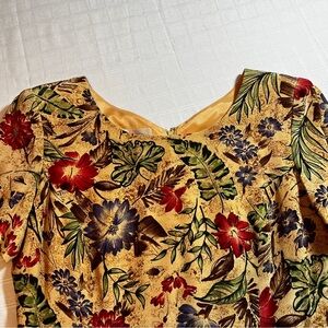 This stunning floral print dress 100% silk vintage dress from Maggy London is the perfect addition to your wardrobe. It is fully lined, has shoulder pads, offers a flattering cut and pleats on the front. The back is a zip closure but has sweet button details. It is a women's size 12; item is preowned and in excellent condition.