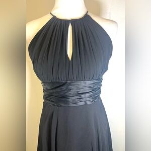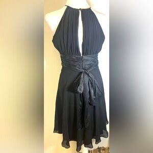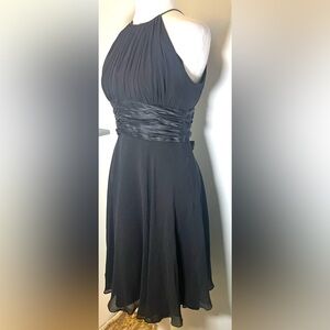 Elegant black vintage silk dress by Maggy London. Tie on the back with zipper back closure
