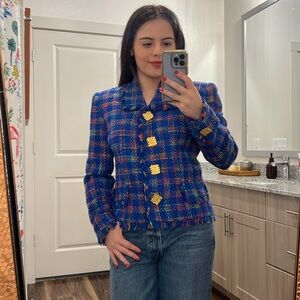 Vintage Maggy London Blue Plaid Tweed Blazer Jacket