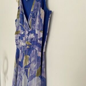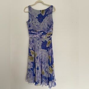Vintage Maggy London Silk Blue Floral Dress 12 Whimsical Fairy Feminine Flowy