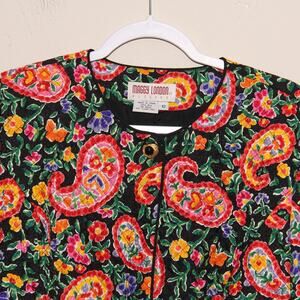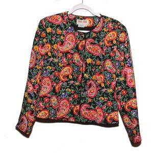 Vintage Maggy London Silk Quilted Floral Paisley Blazer Jacket Size 12
