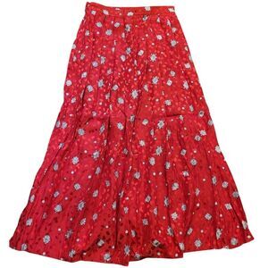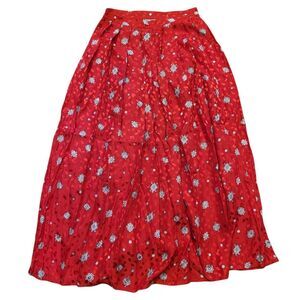 Vintage Maggy London Skirt Women's XS Red Silk Pleated Midi Print 1980s