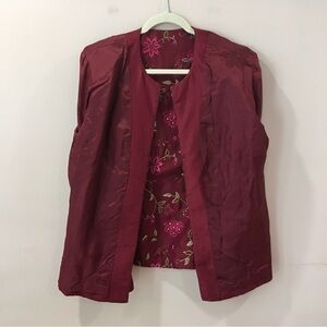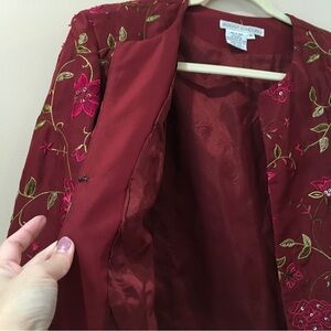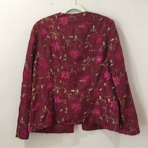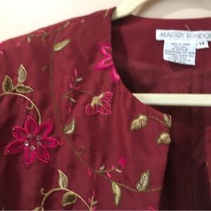 Vintage Maggy London Women’s Red Floral Embroidered 100% Silk Jacket Size 14