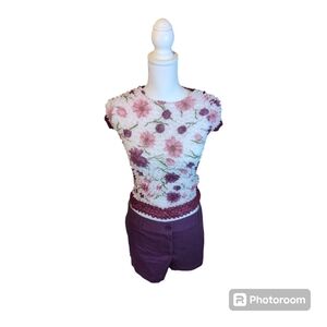 Late 90's / Y2k Printed vintage popcorn/bubble top, crew neck. Can fit cropped or super long, or anywhere in between, up to you.