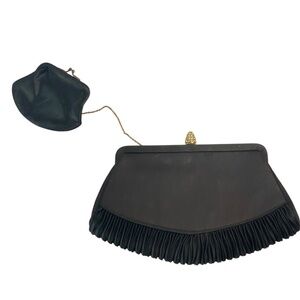 Vintage Magid 60’s Pleated Clutch with Rhinestone Clasp and Baby Coin Bag