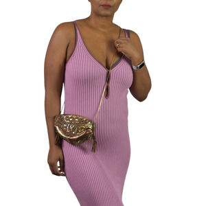 Vintage Magid Shoulder Bag Brown Iridescent Copper Beaded Handmade Shimmer Pouch