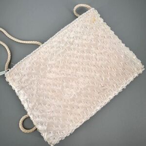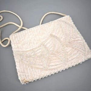 Vintage Magid Women's Iridescent Beaded Clutch Purse Sling Handbag White Mini