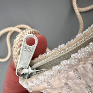 Condition: The strap does not zip into this bag so it can’t be used as a clutch. This has a stain at the corner and a couple pin point stains shown.