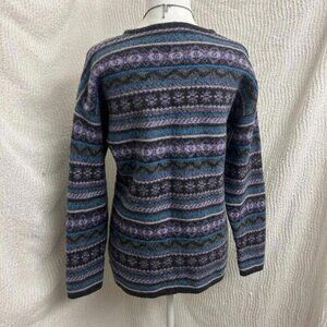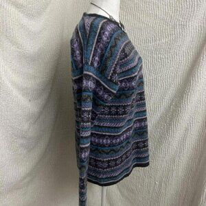 Vintage Maglia Donna Wool Blend Sweater L Italy Gray Purple Blue Striped Boho