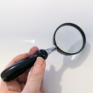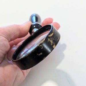 Vintage handheld magnifying glass that is several decades old.