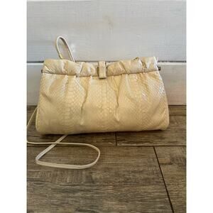 Vintage Magnum Cream Snakeskin Textured Clutch Shoulder Bag