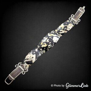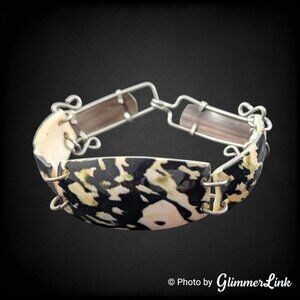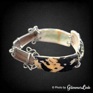 Vintage Magpie Whelk Sigua Conch Shell Panel Silver Tone Artisan Bracelet