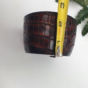 Beautiful vintage real wood round box with carved snake/gator pattern EUC, almost no signs of wear