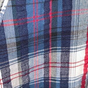 100% cut in textured plaid spring blazer. Single button enclosure. Large room open front pockets. Bold shoulder, shoulder pads, easily removed. Main Street blues. Made in India. Excellent vintage condition.Women’s size B2. Please see measurements below.