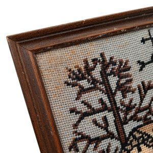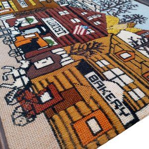 Vintage Main Street Wall Art Needlepoint Fiber Embroidered Decor Framed 1980s