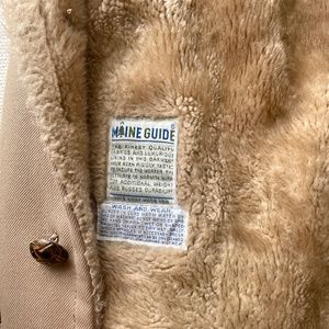 Vintage Congress jacket from Maine Guide with faux fur collar and lining. The kind of jacket that’ll get endless compliments at the ski chalet or even just strutting down the street (which you’ll probably start doing in this jacket.) Fairly well kept and looks great, but one button fell off while photographing and will be sent along with the jacket.
