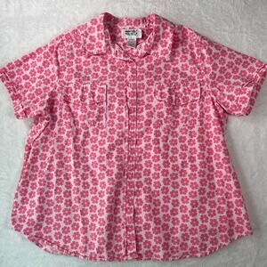 Vintage Mainstreet Blues Pink Floral Short Sleeve Button-Up Shirt 100% Cotton