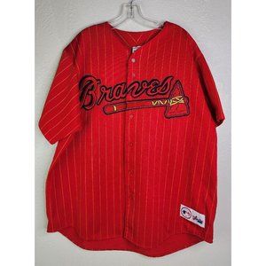 Vintage Majestic Atlanta Braves Pin Stripe Red Jersey Buttons Logo USA Mens XXL?