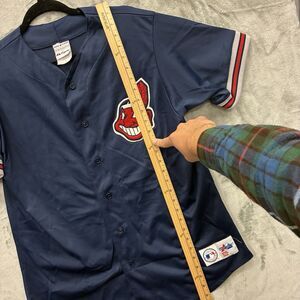 Vintage Majestic Cleveland Indians Jersey Mens L Blue Chief Wahoo Stitched Logo
