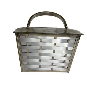 Vintage Majestic Handbag Lucite Handle Chrome Box Metal Weave Design