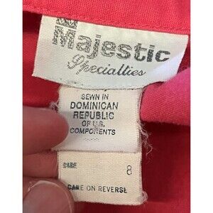 Up for sale is a vintage Majestic Specialties blazer jacket made of a linen blend material. This one-button style blazer features a new wave look and is in an original state from the 1980s. The jacket comes in a size 8 and is a regular fit for women. The color of the blazer is pink and it is an original piece. Has shoulder pads