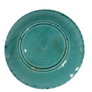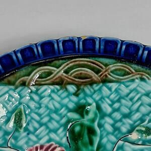 Vintage Majolica Plate with Morning Glory Circa 1900 Green and Blue 7.75" diam
