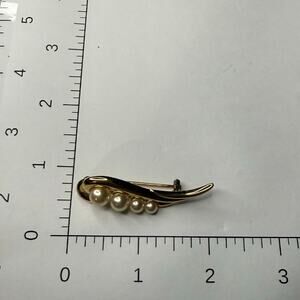 Vintage Majorica Faux Pearl Gold Tone Swirl Pod Bar Brooch Pin Signed